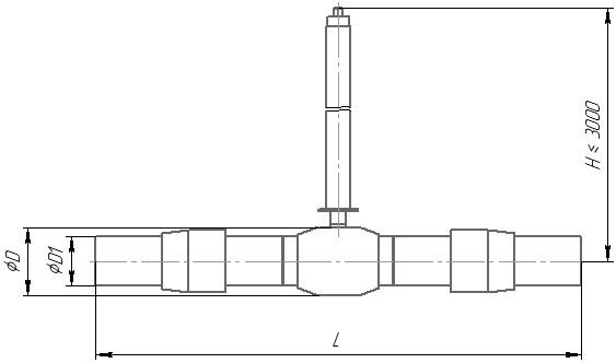 Кран шаровой полнопроходной 592 с удлиненным штоком с переходом на ПЭ патрубки для бесканальной прокладки приварной