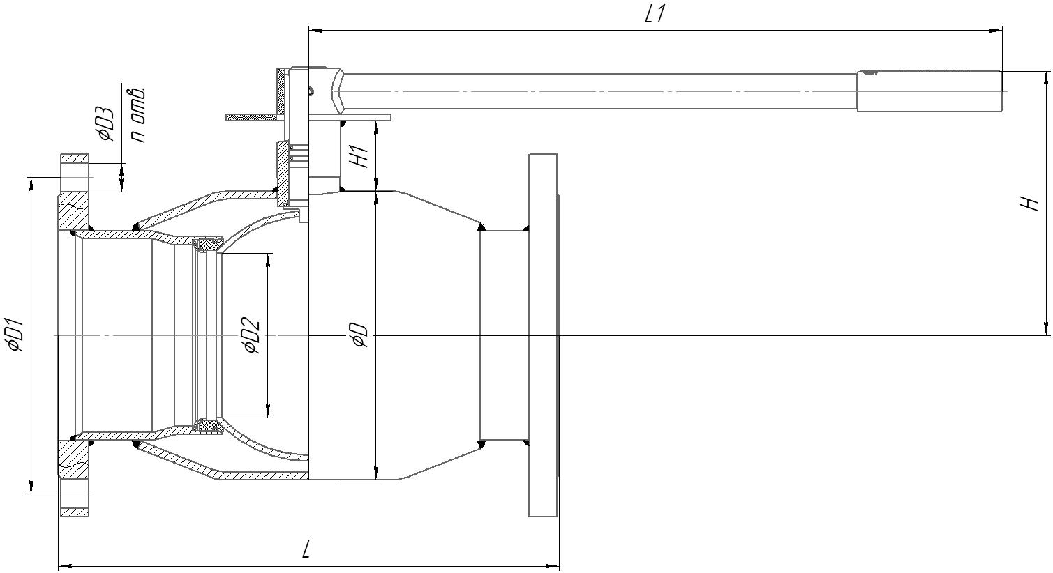 | Артикул | DN | PN | L | L1 | H | H1 | D | D2 | D3 | D4 | n отв. | Вес,кг | |