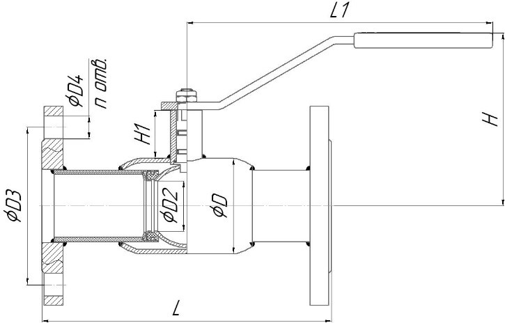 | Артикул | DN | PN | L | L1 | H | H1 | D | D1 | D2 | D3 | N OF HOLES | Вес | |